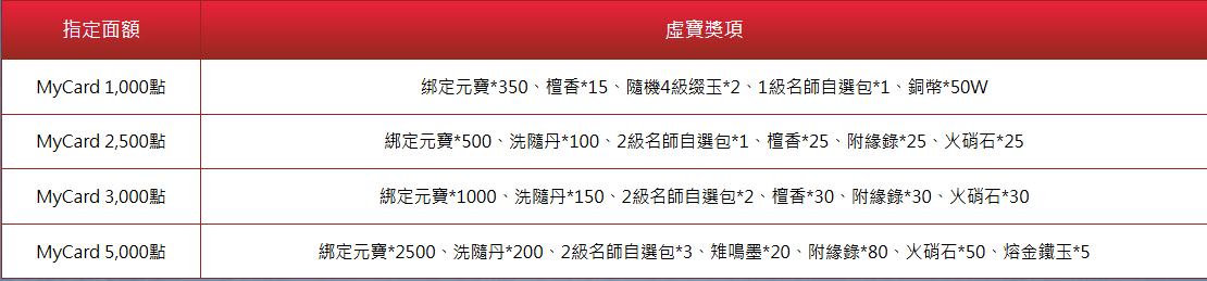 在活動期間內,至活動通路購買指定面額,並成功儲值進遊戲中,即可獲得相對應虛寶獎勵回饋呦!